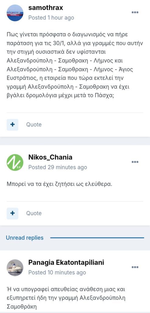 Και η ερώτηση με τις απαντήσεις στο forum του shipfriends.gr στο θέμα “Άγονες Βορείου Αιγαίου”: