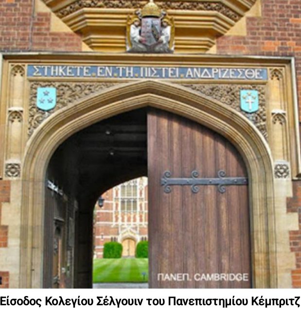 Η εικόνα της πύλης του Κολεγίου Σέλγουιν (Selwyn) στο Κέιμπριτζ, που περιλαμβάνεται στο άρθρο, με τη χαραγμένη ελληνική επιγραφή “ΣΤΗΚΕΤΕ ΕΝ ΤΗ ΠΙΣΤΕΙ, ΑΝΔΡΙΖΕΣΘΕ”, θυμίζει σε όλους μας ότι η ελληνική γλώσσα παραμένει ο παγκόσμιος φάρος του πνεύματος, ακόμα και εκεί που δεν το περιμένουμε